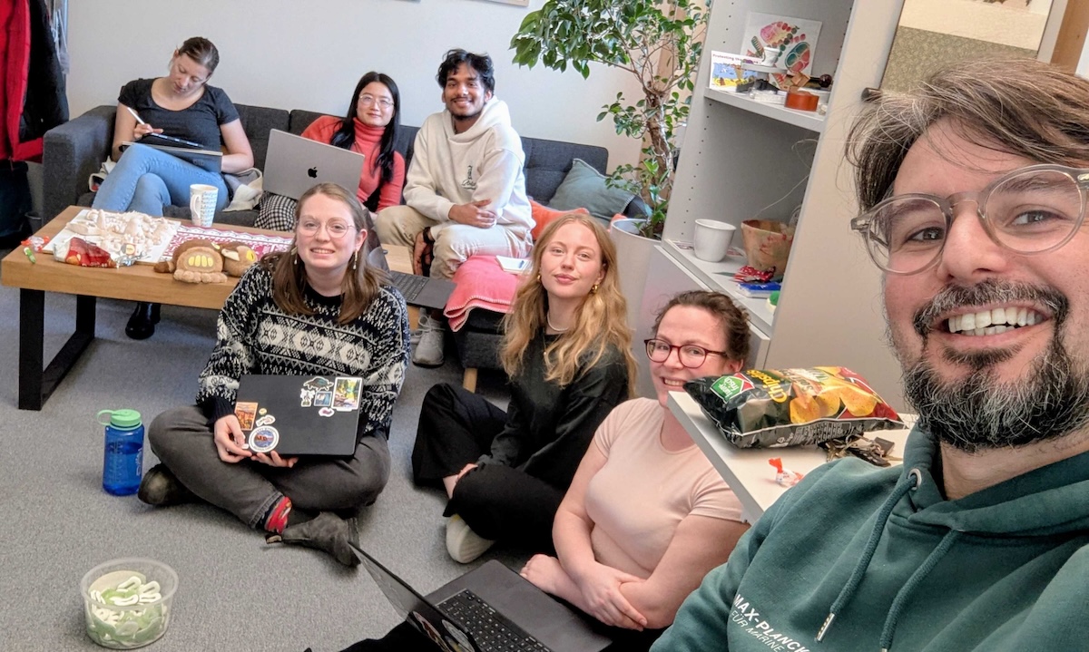 Upper row left to right: Sarah Hahnke, Raïssa Meyer, Xixi Chen, and Nithin Joseph Simon. Lower row right to left: Florian Trigodet, Jessika Füssel, Iva Veseli, Kathryn Lambert-Slosarska (Katy), Avril von Hoyningen-Huene, Alex Henoch, and Meren. The photograph is missing our colleagues Samuel Miller and Sarah Tucker, who couldn't make it to the Lab Retreat.